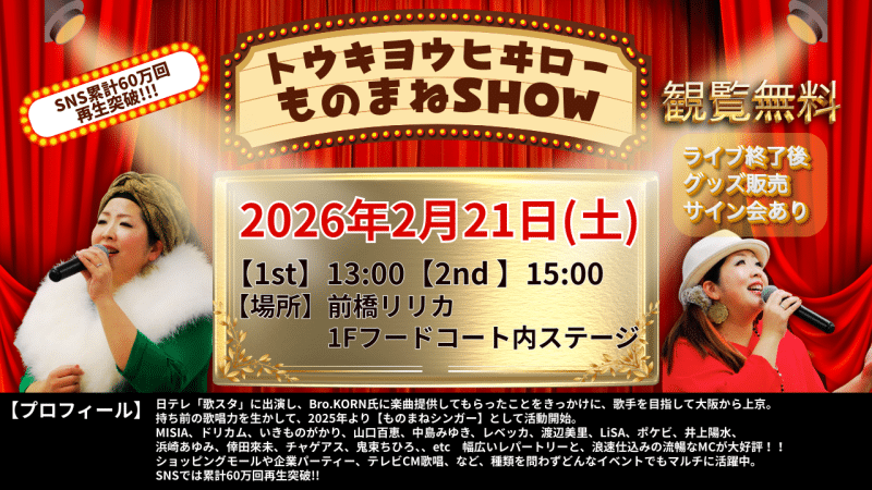 歌手活動開始!!2025年より「ものまねシンガー」として活躍の幅を広め、幅広い