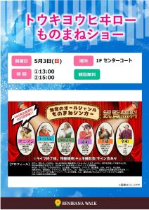 ものまねシンガー「トウキヨウヒキロー」がベニバナウォークに初登場!